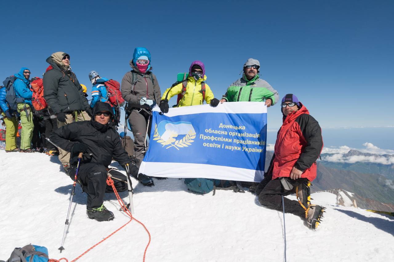 На честь 75-річчя утворення Донецької обласної організації Профспілки працівників освіти і науки України прапор обласної профспілки освітян – на горі Казбек! (5033 м)