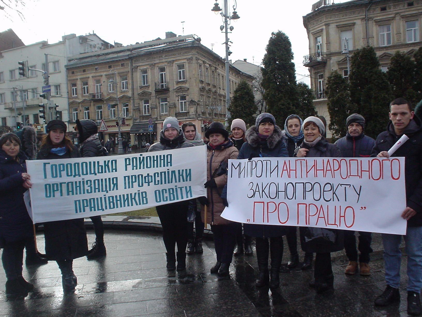 Об’єднані, сконсолідовані українські профспілки збирають підписи, надсилають листи до народних депутатів щодо Звернень з приводу дискримінаційних законопроєктів до Конституційного суду. Про наступ на культуру і науку діючої влади говорили директор інституту народознавства, екс-нардеп Степан Павлюк, голова Дрогобицької районної організації профспілки працівників культури Люба Рубан. Цей законопроект закону про працю, сказав голова обласної молодіжної Ради Олег Долінський, несе злобу в суспільство: молода сім’я буде боятися взяти кредит на житло, народити дітей, бо в будь-який момент буде свавільно позбавлена роботи, а в майбутньому – пенсії і засобів до існування.