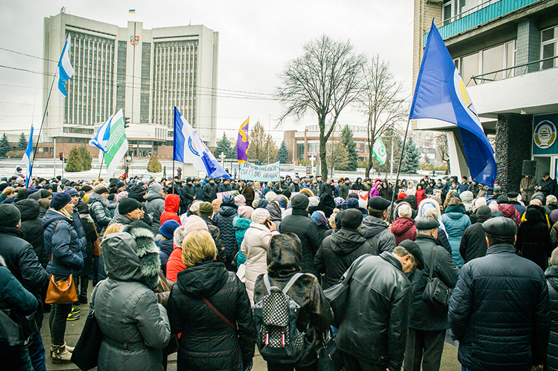 На площі перед Федерацією профспілок області зібралося маже тисяча спілчан, делегованих більш ніж від трьох тисяч первинних профспілкових організацій області.