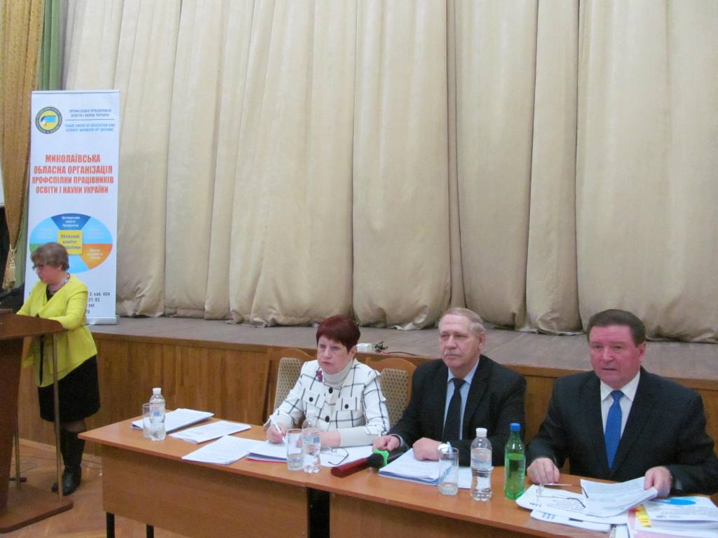 Із питань порядку денного виступили: голова обласної організації Профспілки В.М. Оборонько, директор департаменту освіти і науки облдержадміністрації О.О. Удовиченко, директор інституту післядипломної педагогічної освіти В.І. Шуляр, начальник відділу освіти Арбузинської райдержадміністрації В.В. Дерій, начальник відділу освіти Веселинівської селищної ради І.В. Павлюк, голова Вознесенської районної організації Профспілки О.М. Чепілка, начальник відділу освіти Южноукраїнської міськради Ю.М. Сінчук, голова первинної профспілкової організації Миколаївського національного університету ім. В.О. Сухомлинського В.М. Січко.