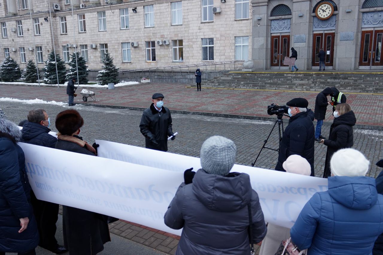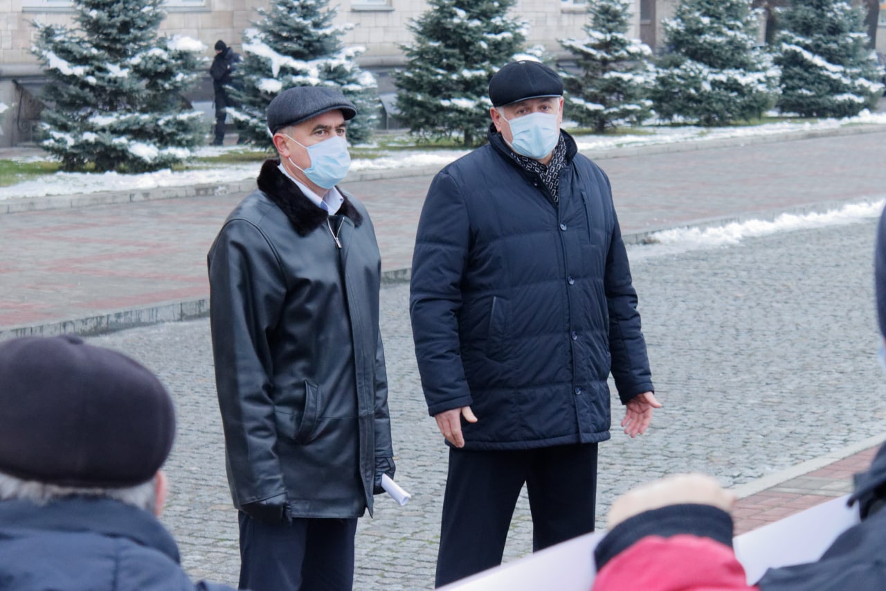 До учасників акції протесту доєдналися голова Федерації Профспілок Черкаської області Петро Шевченко та голова обласної організації Профспілки працівників державних установ Черкаської області Василь Олійник.