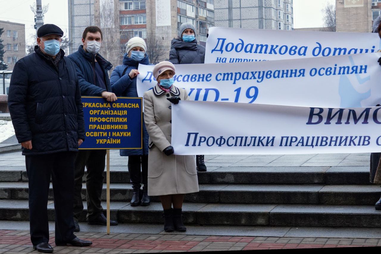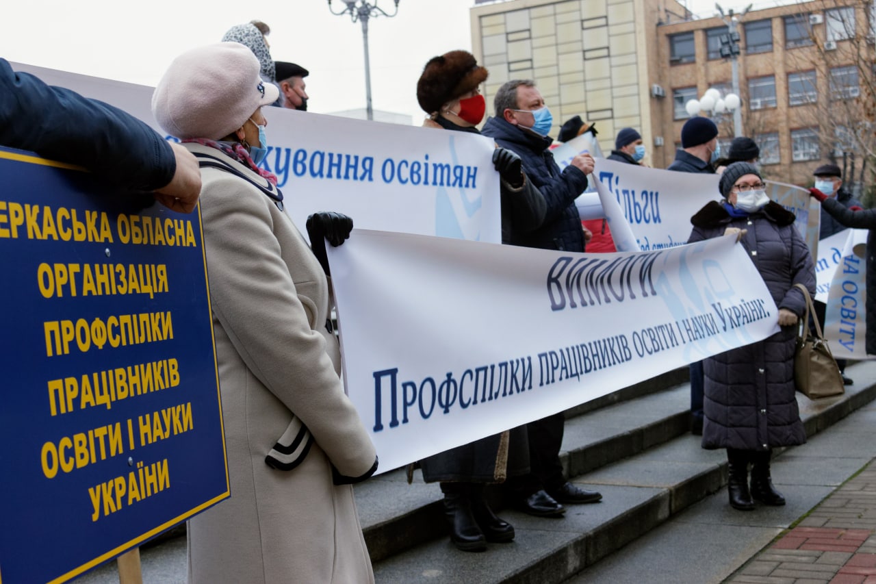 03 грудня 2020 року у різних містах України з цього приводу відбулася профспілкова акція протесту. У Черкасах спілчани, на чолі з головою обласної організації Профспілки працівників освіти і науки України Анатолієм Стеценком, провели інформаційний пікет перед будівлею Черкаської обласної адміністрації, де проголосили свої основні вимоги, а саме: