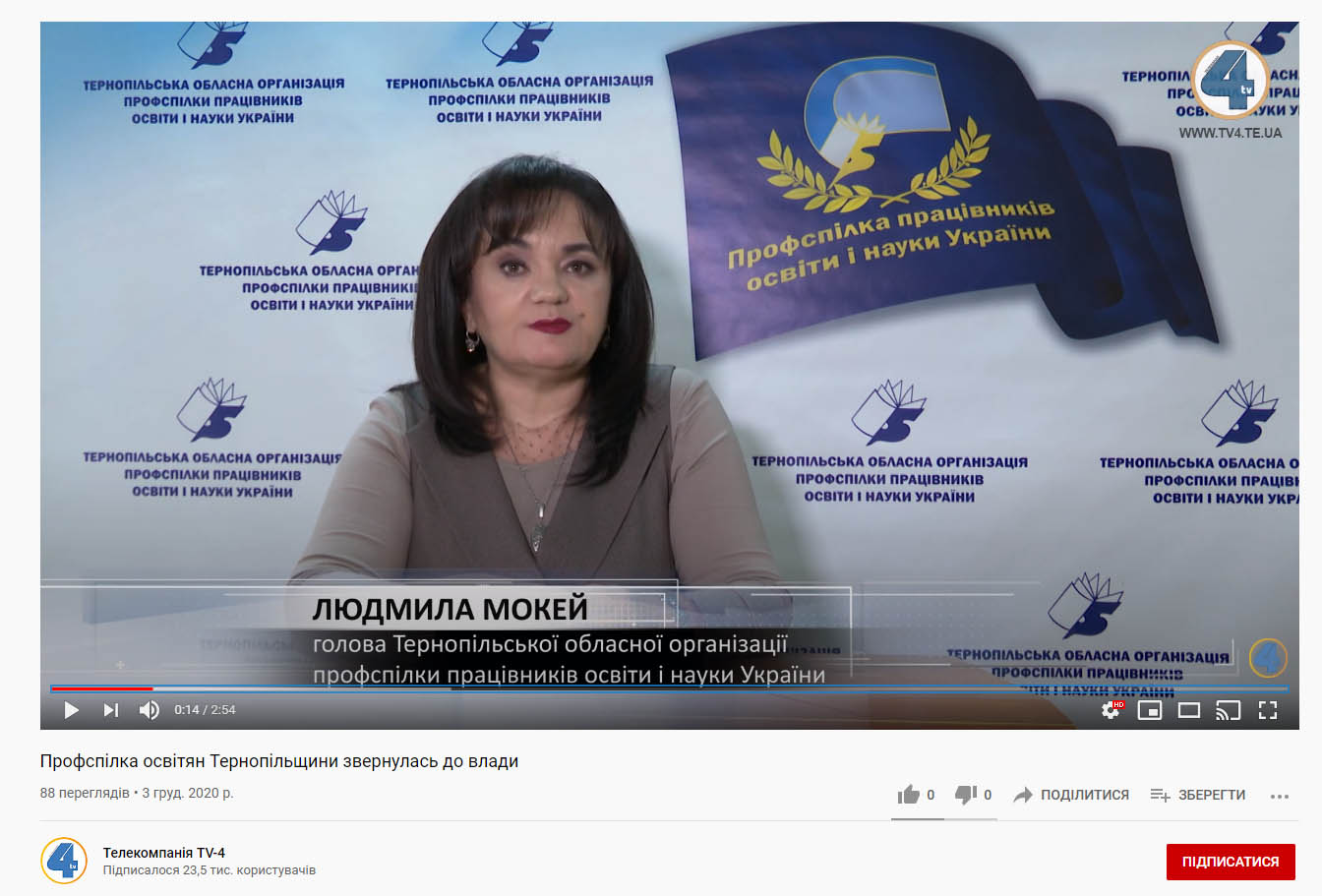 Тернопільська обласна організація Профспілки працівників освіти і науки України в ефірі регіонального телеканалу західного регіону «TV-4» – поінформувала спілчан про акції протесту за бюджет 2021 та проти антисоціальних законопроектів, які продовжують наступ на права працівників, які відбувалися 2-3 грудня цього року.