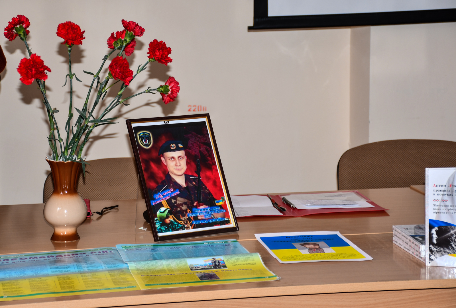 Зі словами подяки за сина-героя звернулася до мами Ольга Чабанюк директорка Центру виховної роботи та соціальної адаптації студентів КНЕУ. Адже пам'ять про таку людину має довго жити і ставати прикладом вірності ідеям справедливості та знаком вдячності й пошани батькам та матерям усіх загиблих українських воїнів. І тоді Антон і всі «воїни світла» продовжуватимуть жити не лише у книгах, але й у пам’яті людській…