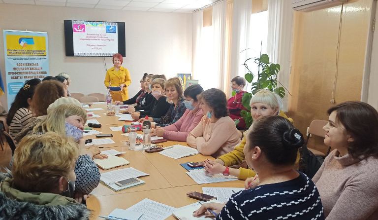Доповідаючи про проведену роботу, Світлана Олександрівна відзначила, що Профспілка працівників освіти і науки України була і залишається активним, дієвим представником освітян у відстоюванні трудових та соціально-економічних прав та інтересів спілчан.