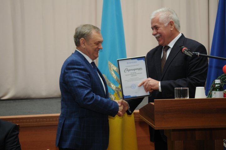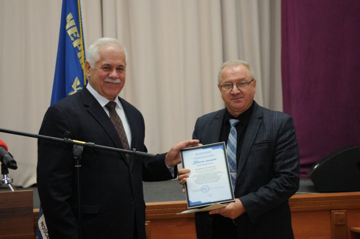 Зокрема, Анатолій Стеценко, звернувся до присутніх із вітальним словом і нагородив університет подарунковим грошовим сертифікатом, а також вручив високі профспілкові нагоди: