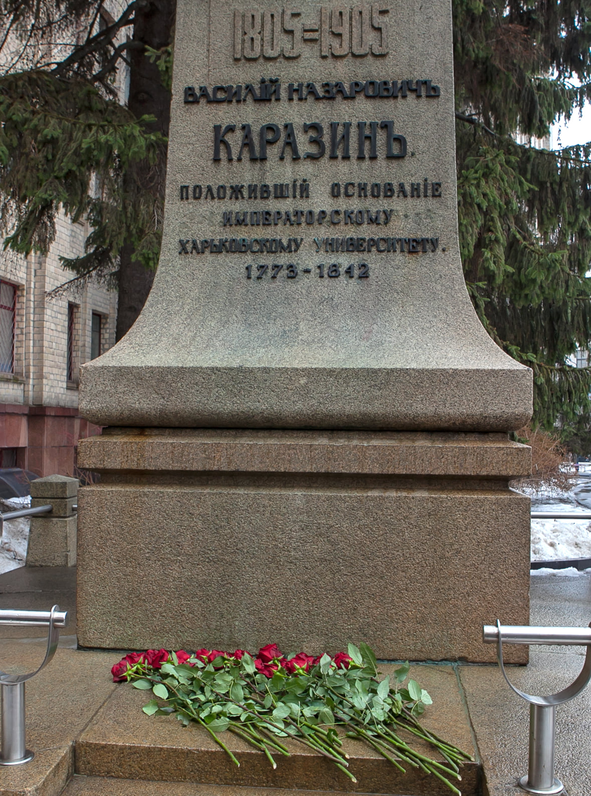 Для вшанування пам’яті видатного просвітника адміністрація та працівники Каразінського університету провели урочисту церемонію покладання квітів до пам’ятника засновнику Харківського університету.