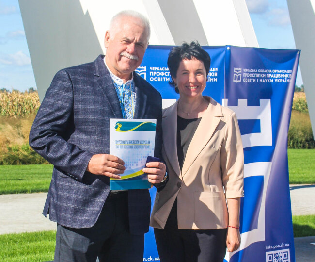 Анатолій Стеценко, голова обласної організації Профспілки працівників освіти України, звернувся до присутніх з вітальним словом та нагородив відзнаками профспілковий актив працівників освіти і науки області.
