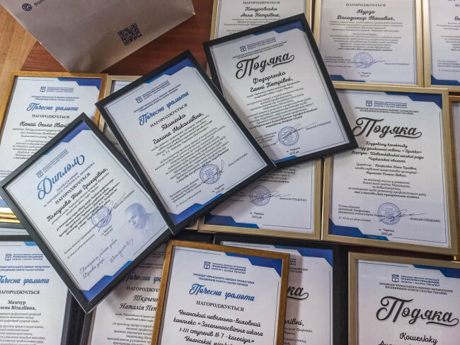 Також учасники отримали в подарунок патріотичні сердечка, які в Обласному Будинку вчителя виготовляють учениці 10-А класу Черкаської загальноосвітньої школи І-ІІІ ступенів №8 Іванка Боброва та Олександра Ємельянова під керівництвом волонтерки громадської організація «Наш батальйон» Ольги Рачинської. Ці обереги наповнились енергетикою цього унікального місця сили, з переконанням, що вони стануть для всіх символами перемоги українського народу у війні проти росії.
