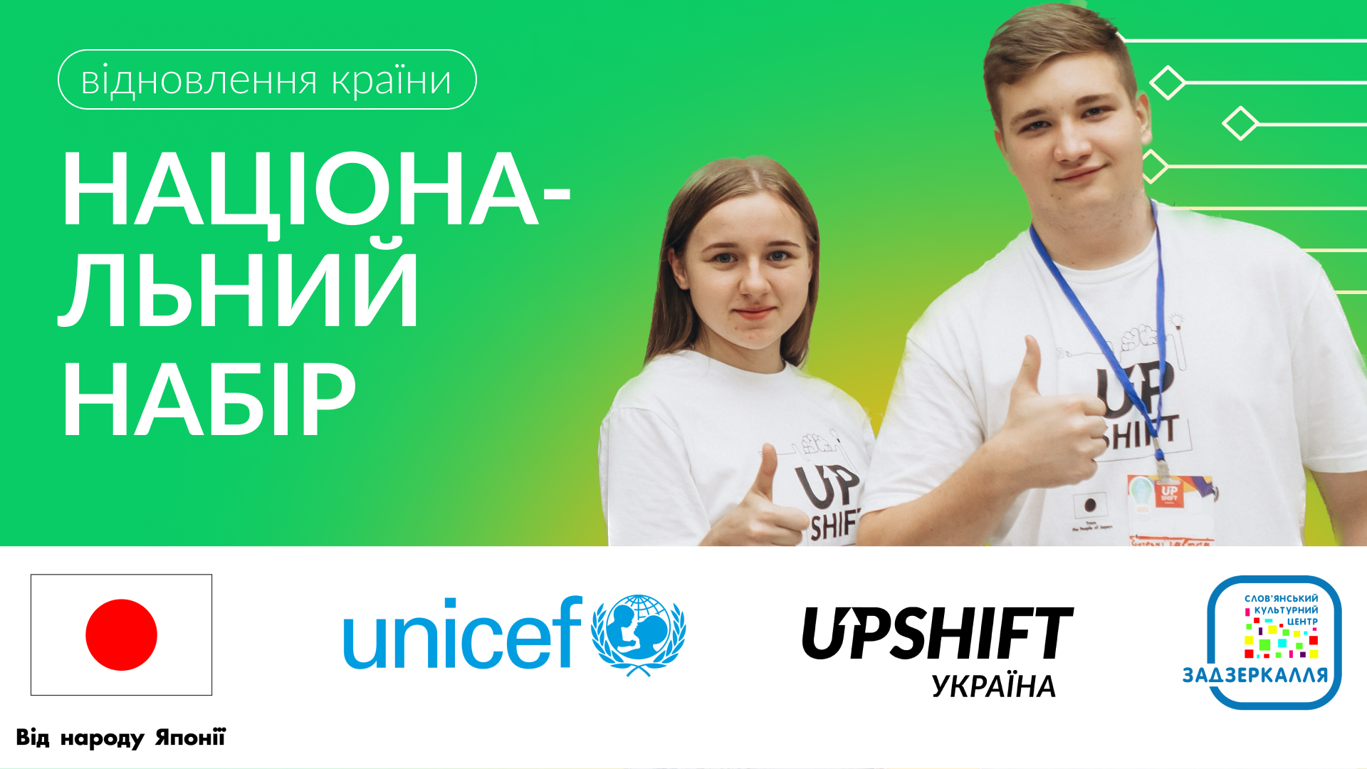 Національна хвиля програми UPSHIFT реалізується ГО «СКЦ «Задзеркалля»» за підтримки Дитячого фонду ООН (ЮНІСЕФ) та Уряду Японії.