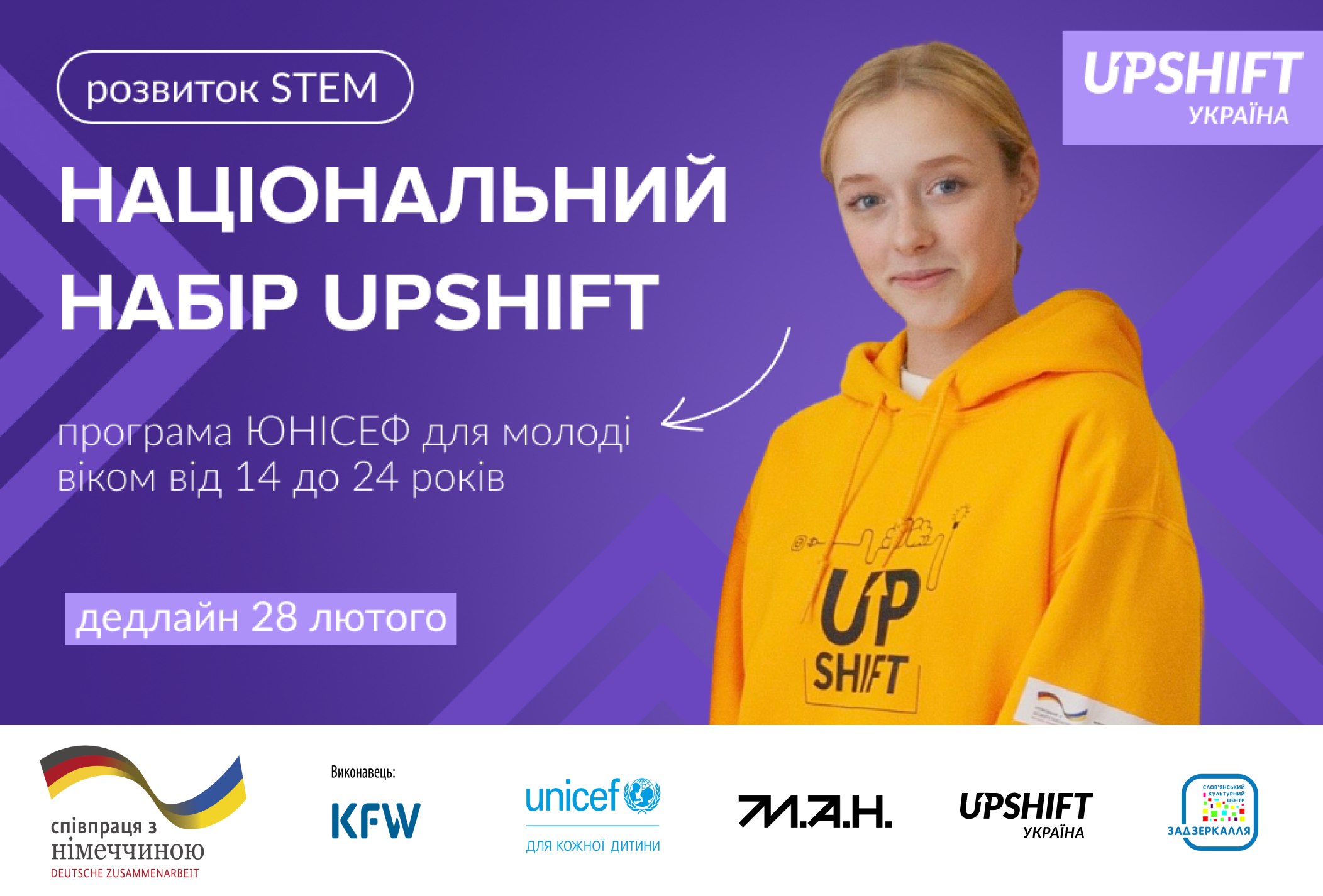 Дитячий фонд ООН (ЮНІСЕФ) та Мала академія наук України запускає набір на інноваційну програму UPSHIFT. Набір присвячений розвитку STEM-навичок серед молоді. Учасники у супроводі менторів знайдуть ефективні рішення проблем, які їх турбують у галузі науки, створять власний суспільно-корисний проєкт, використовуючи STEM-підхід, та отримають ресурси на його реалізацію.