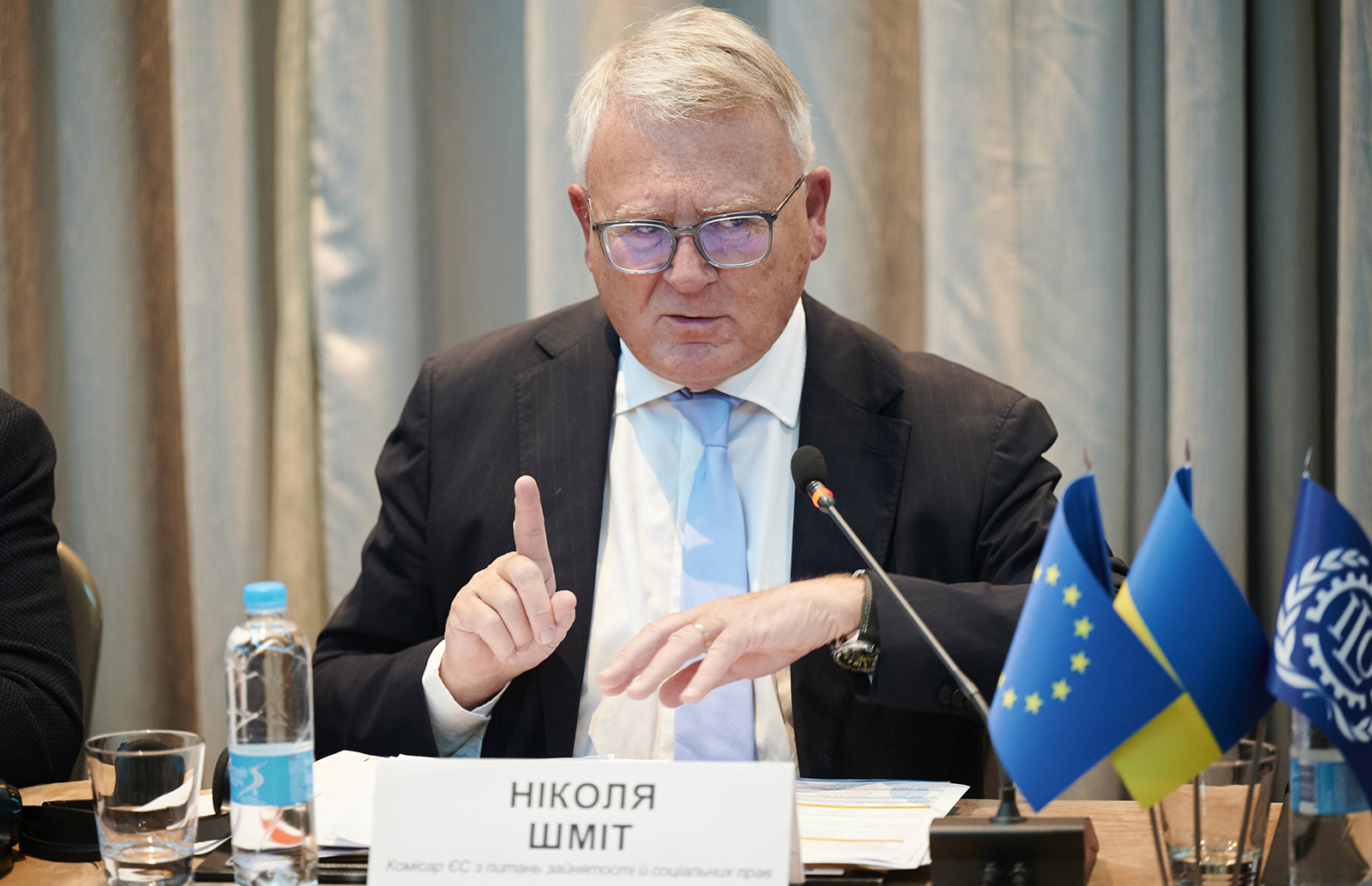 Генерального директора МОП супроводжував Європейський комісар з питань зайнятості та соціальних прав Ніколас Шміт.