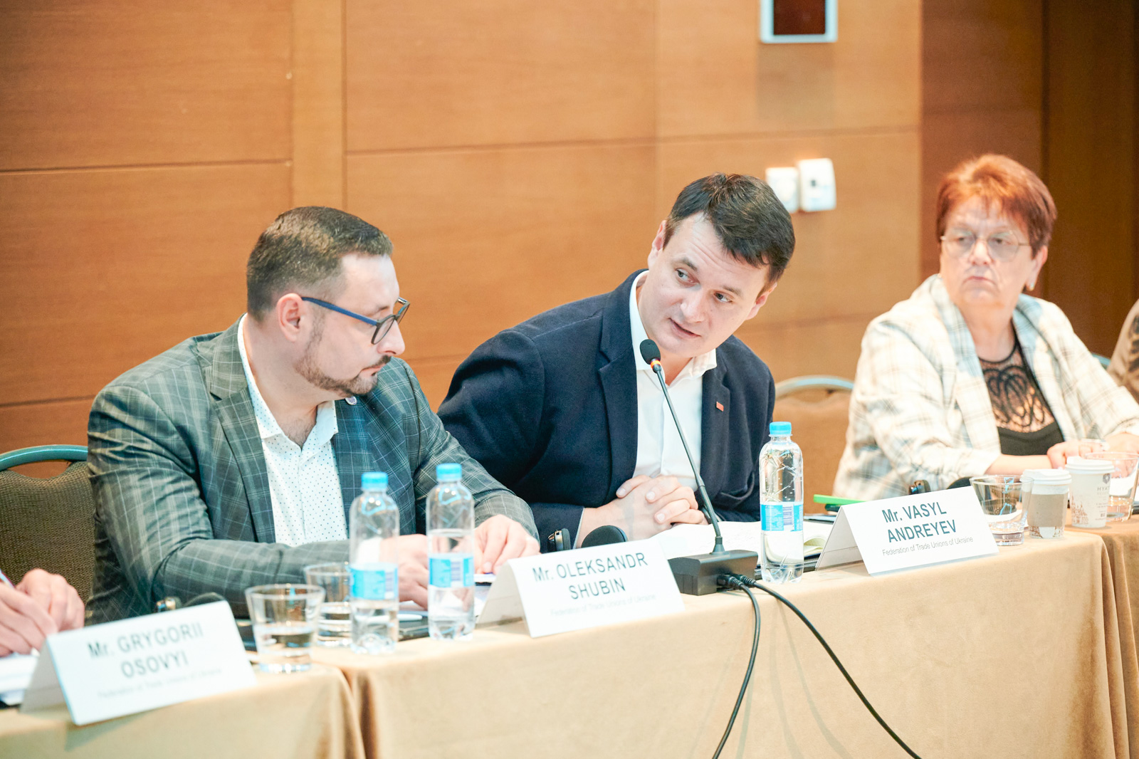 Вони поспілкувалися з Григорієм Осовим, Головою Федерації профспілок України, з керівниками членських організацій ФПУ, Михайлом Волинцем, головою КВПУ, Дмитром Олійником, президентом Федерації роботодавців України, Василем Кострицею, заступником голови Об'єднання організацій роботодавців України, та Олексієм Мірошниченком, президентом Конфедерації роботодавців України.