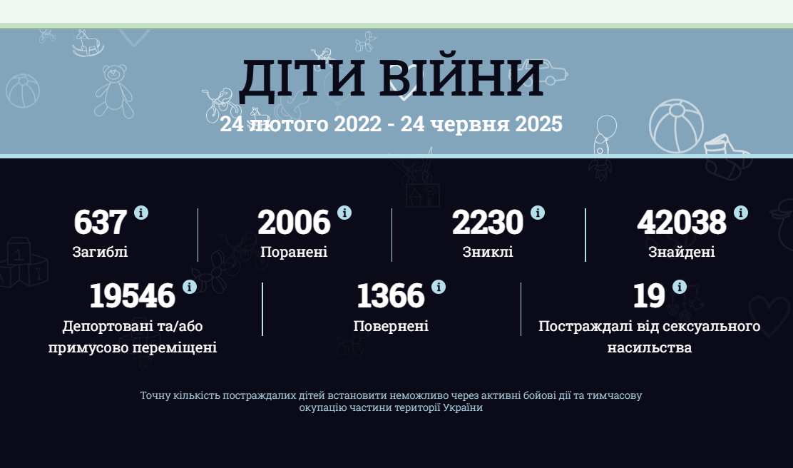 637 дітей загинули в Україні внаслідок збройної агресії рф