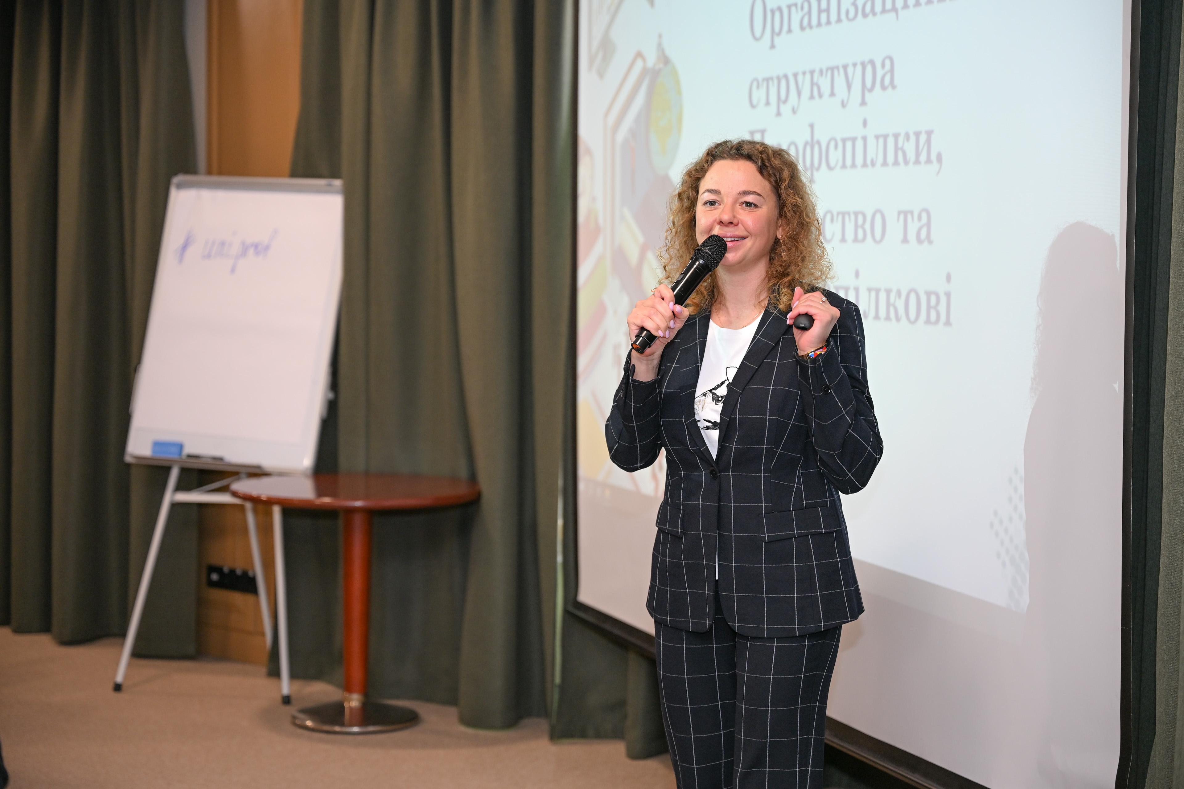Далі відбулася практична частина семінару – тренінг «Командна робота та комунікації в профспілках», який провела Вероніка Халіна. Учасники обговорили, як формувати ефективну команду, будувати довіру й підтримку, долати бар’єри у спілкуванні та досягати спільних результатів через партнерство і взаємоповагу.