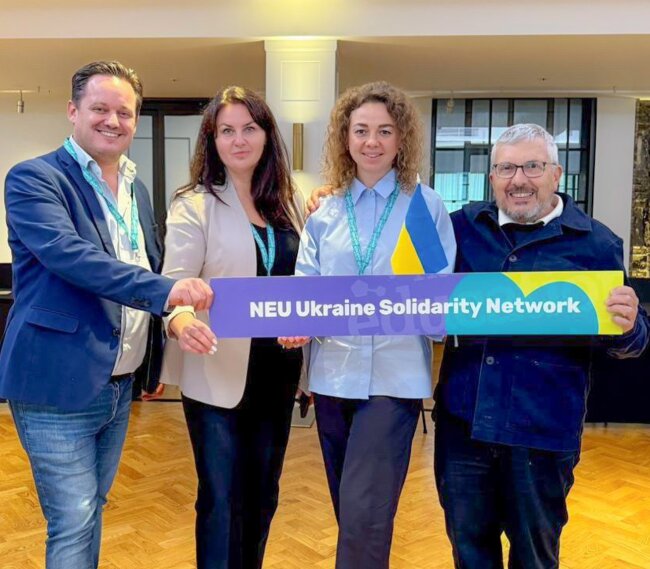 Українська делегація також висловила вдячність Національній спілці освіти Великої Британії за постійну підтримку, солідарність, а також сприяння тому, щоб голос українських освітян звучав на міжнародних майданчиках – прямо й правдиво.