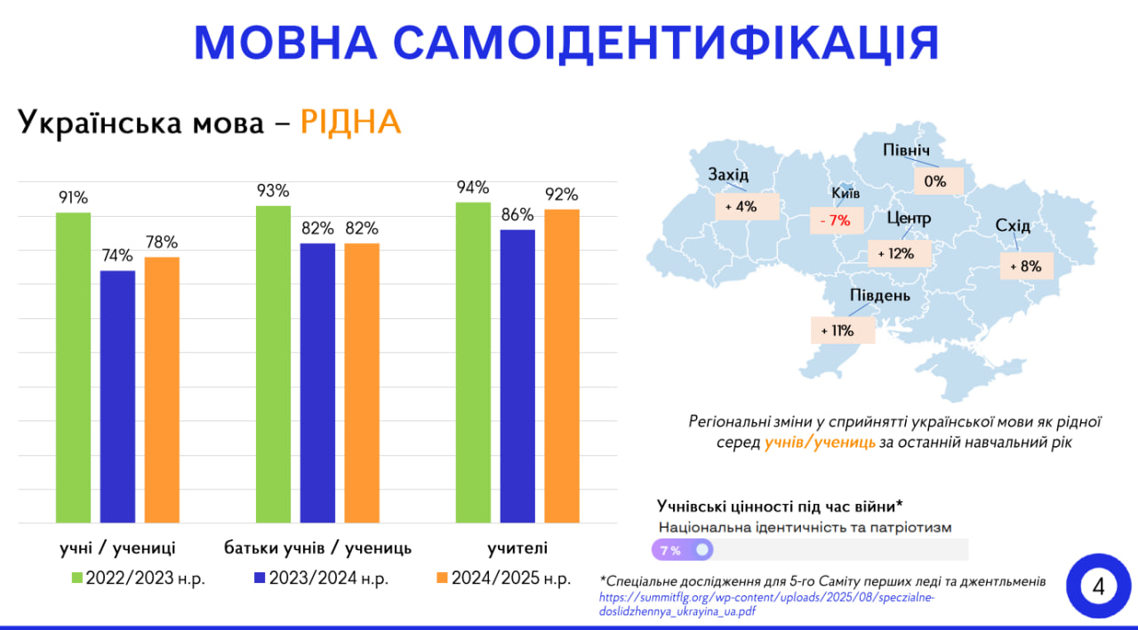 - 78% учнів вважають українську рідною мовою (на 4% більше, ніж торік);