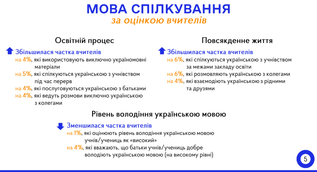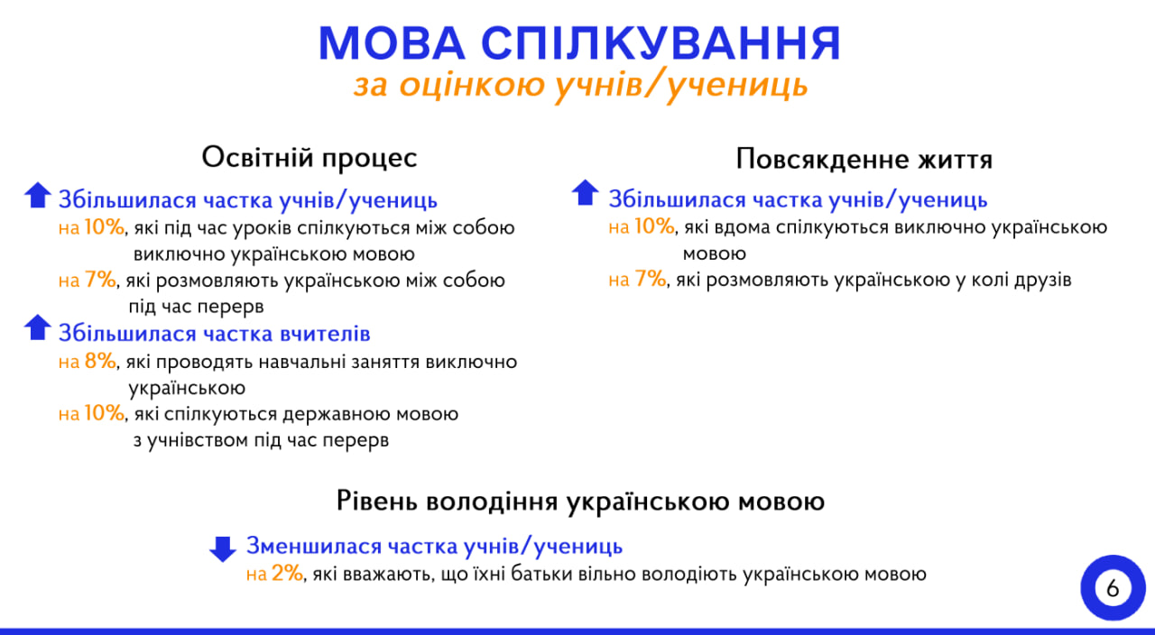 Результати засвідчили стале зміцнення позицій української мови як основної мови навчання.