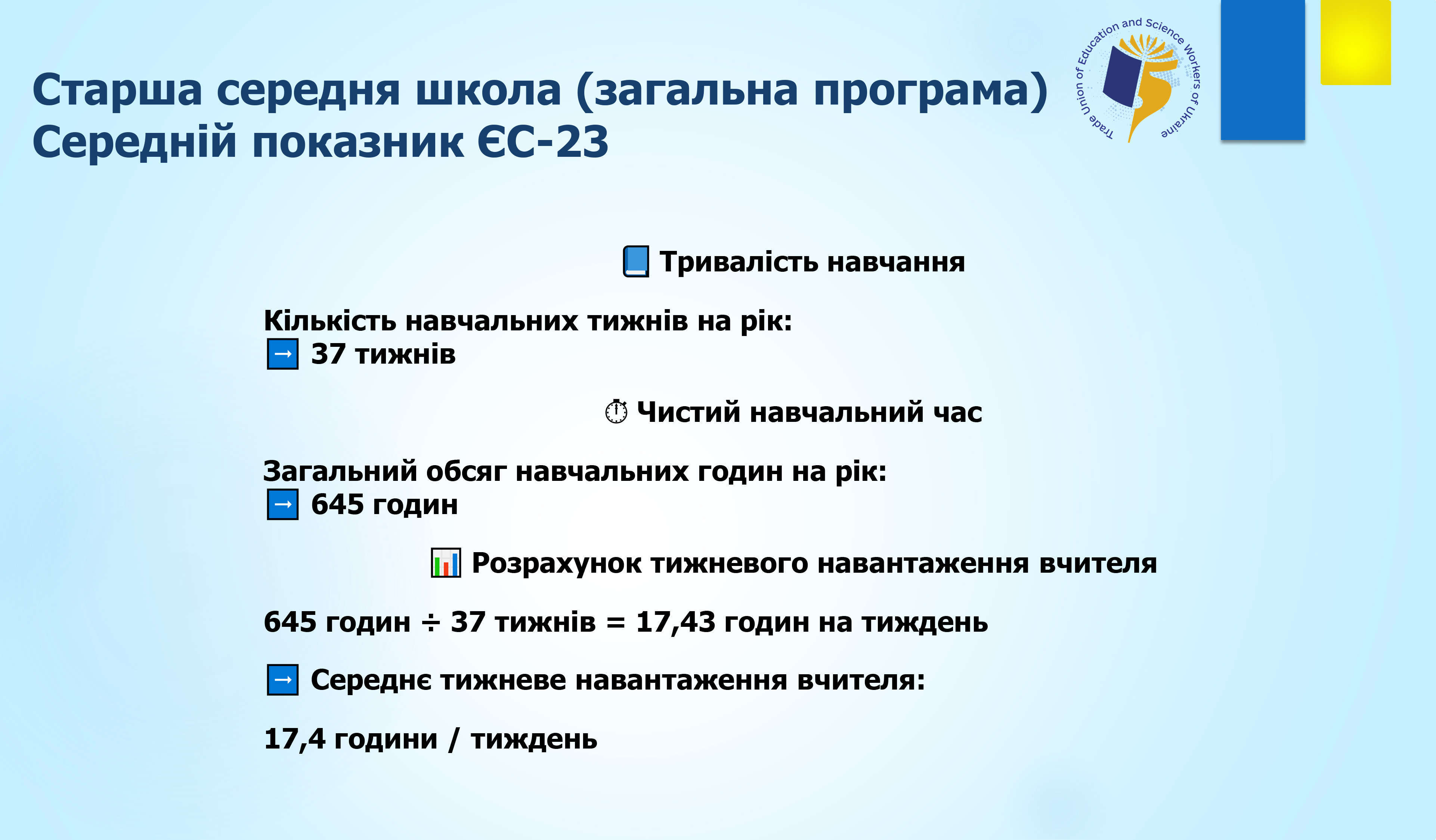 Зокрема, для старшої середньої школи (загальна програма) середній показник ЄС-23 становить: