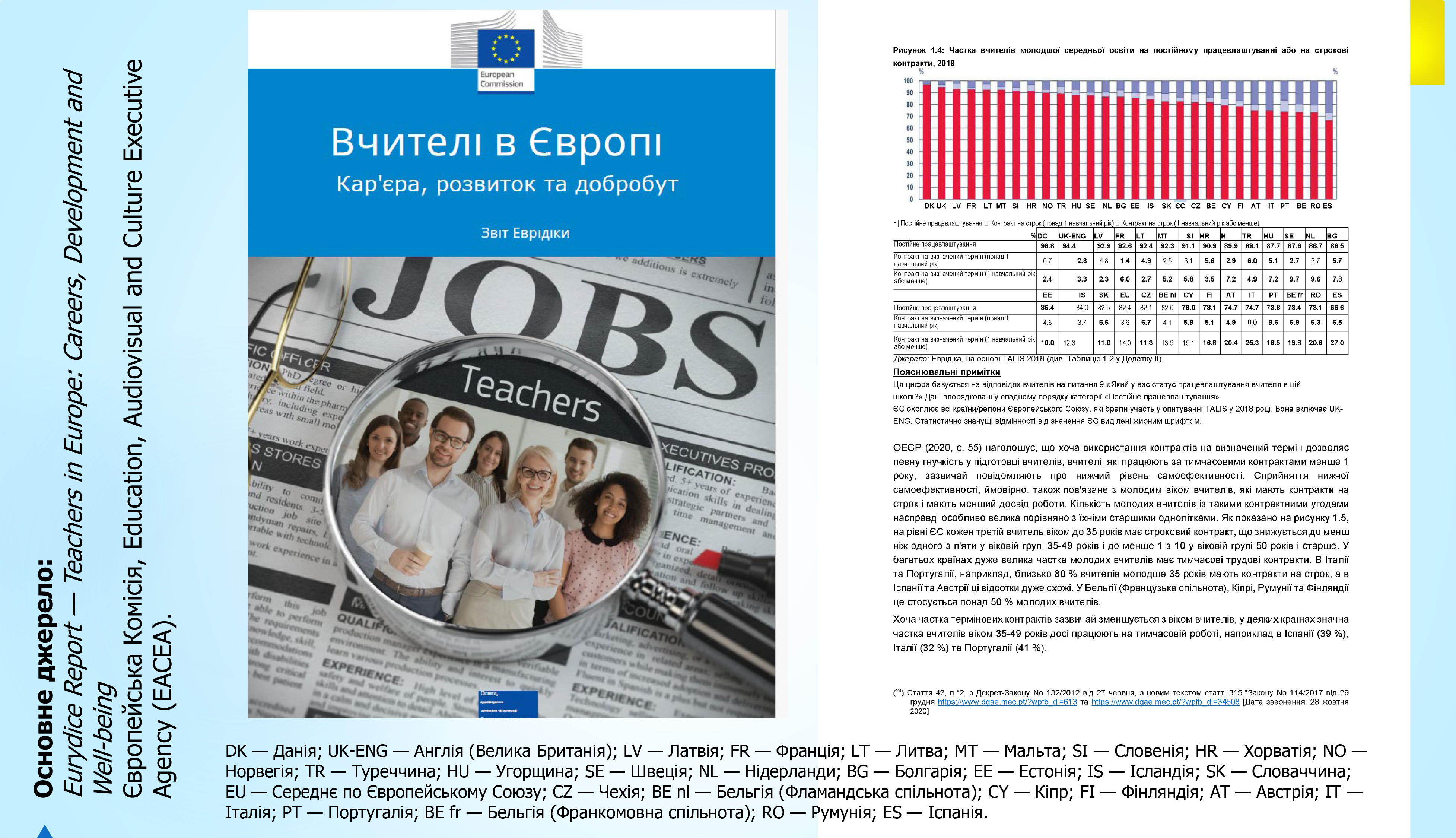 Європейські підходи щодо організації робочого часу та навчального навантаження педагогів оприлюднені у звітах Eurydice та OECD (Організації економічного співробітництва та розвитку). Ці дані дозволяють порівняти умови праці вчителів у країнах ЄС.