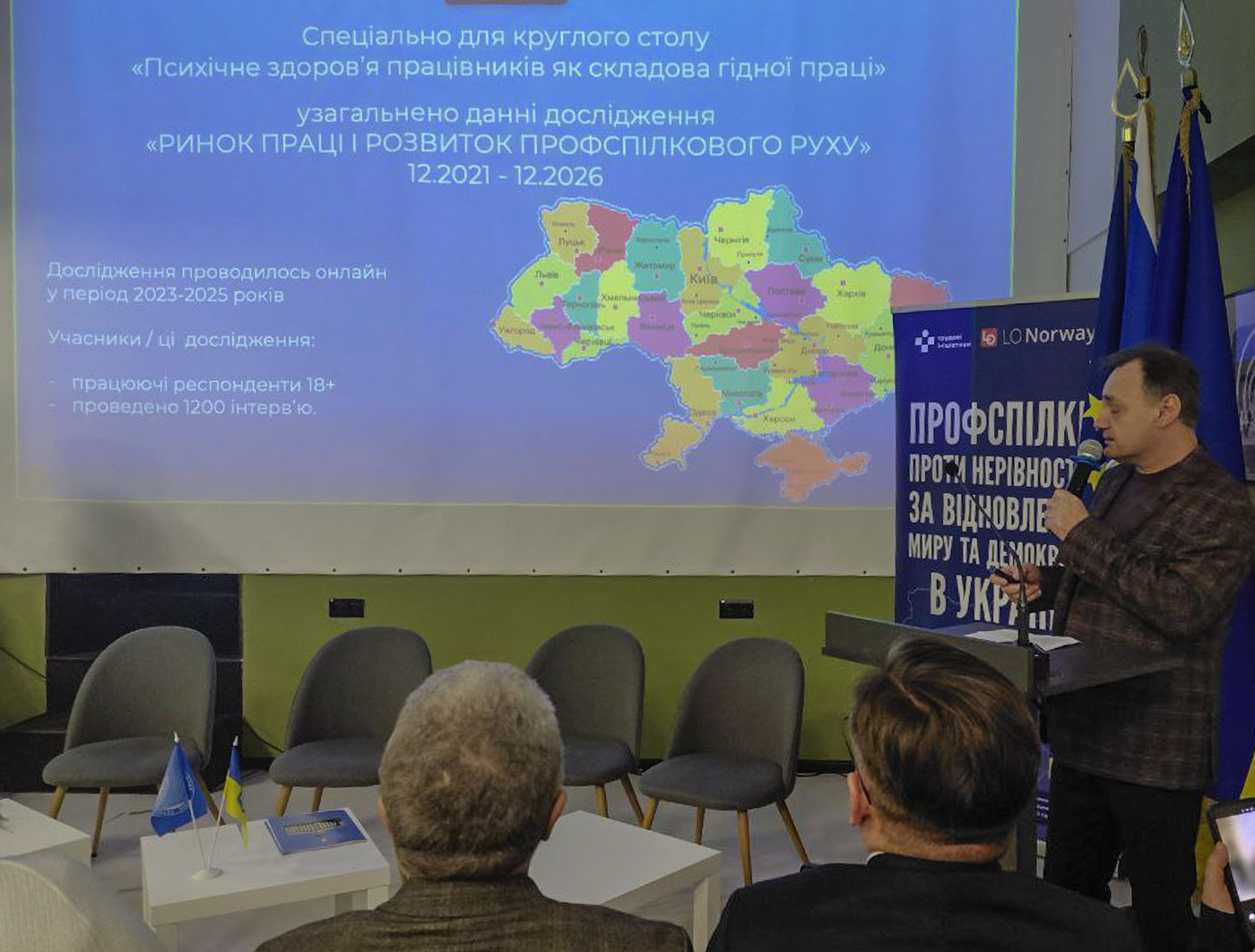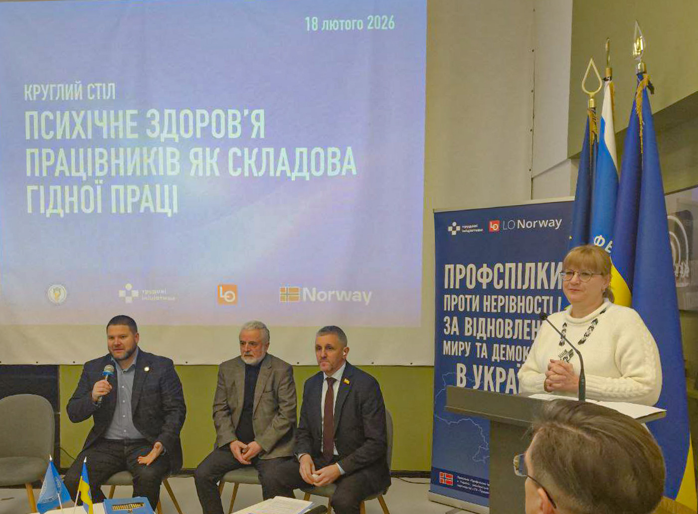 18 лютого 2026 року у Києві відбувся круглий стіл на тему: «Психічне здоров’я працівників як складова гідної праці». Організатором заходу виступила Федерація профспілок України.