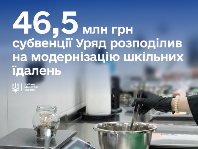 В Україні триває оновлення шкільної інфраструктури в межах реформи шкільного харчування. Урядом ухвалено рішення про розподіл додаткових 46,5 млн грн субвенції громадам для завершення модернізації шкільних їдалень.