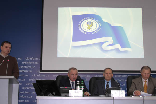 Спікерами прес-конференції виступили Григорій Осовий – Голова Федерації профспілок України, Валерій Мамченко – заступник Голови Профспілки працівників вугільної промисловості, Валерій Гейко – керівник лабораторною службою CEC Деснянського району м. Києва, Марія Смирнова – голова профкому столичного дошкільного навчального закладу № 95, Олександр Леонов – начальник управління планування та виконання бюджету Виконавчої дирекції Фонду соціального страхування з тимчасової втрати працездатності.