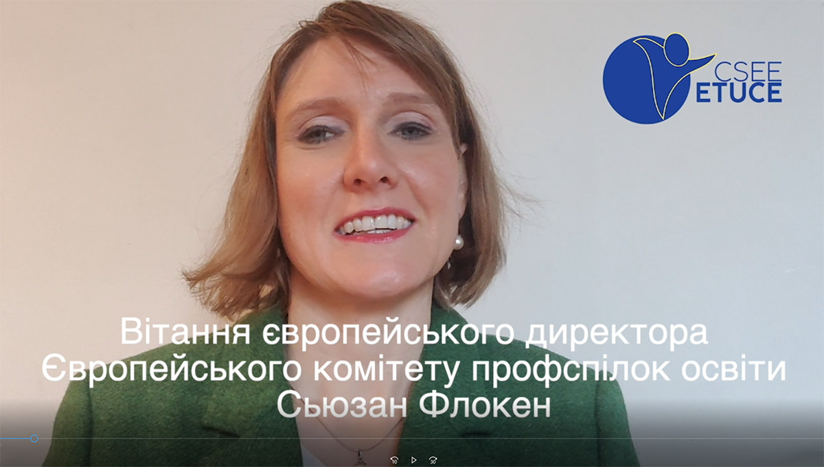 Європейський директор Європейського комітету профспілок освіти Сьюзан Флокен надіслала відеозвернення до колег та учасників ІХ З'їзду Профспілки працівників освіти і науки України, який відбувся 17 грудня 2020 року.