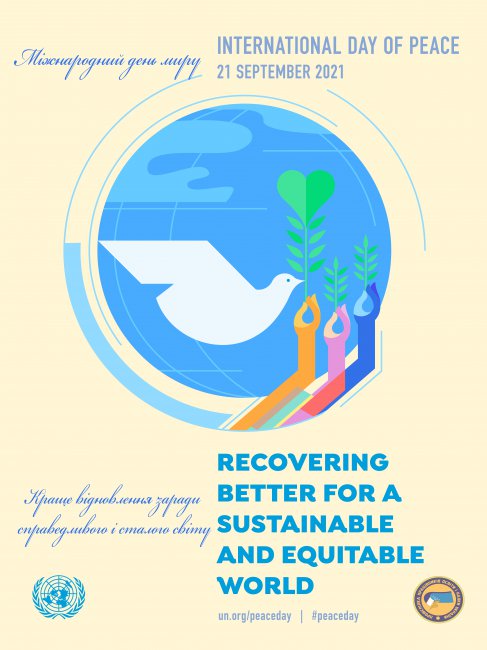 Тема 2021 року до Міжнародного дня миру – «Краще відновлення заради справедливого і сталого світу». ООН запрошує усіх об’єднати зусилля, зосередитися на пришвидшенні одужання та відновлення для більш справедливого та мирного світу.