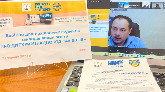 23 червня 2022 року відбувся вебінар у рамках інформаційно-просвітницького проєкту «Запобігання та протидія дискримінації працюючих студентів на робочому місці».