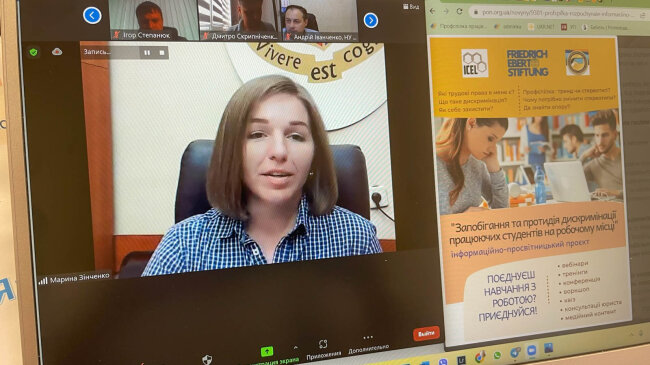 Спікери Ольга Чабанюк – заступниця голови Профспілки працівників освіти і науки України та Володимир Ковальчук – юрист Підприємства «НМЦ» профспілок протягом усього вебінару допомагали молоді зрозуміти як захищатися від утисків та дискримінації на робочому місці і яким чином застосовувати механізми, які не допускатимуть цього під час праці.