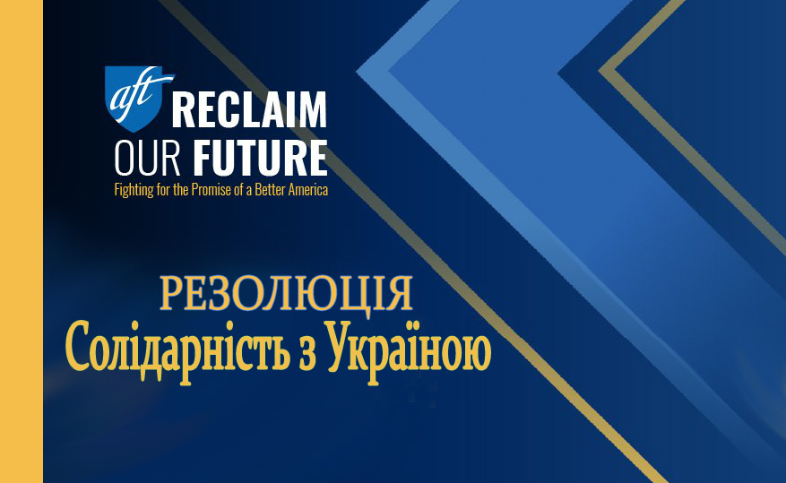 Національний з’їзд Американської федерації вчителів, що відбувся 13-17 липня 2022 року у Бостоні (США) від імені 1,7 мільйона спілчан прийняв Резолюцію щодо солідарності з Україною. Участь у роботі заходу взяли понад три тисячі учасників – представники профспілок освіти США та Європи.