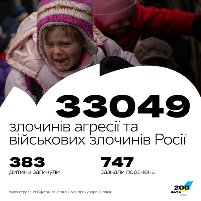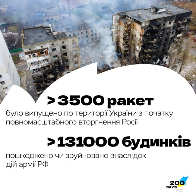 Сьогодні 200 днів боротьби українського народу проти російських загарбників у повномасштабній війні.