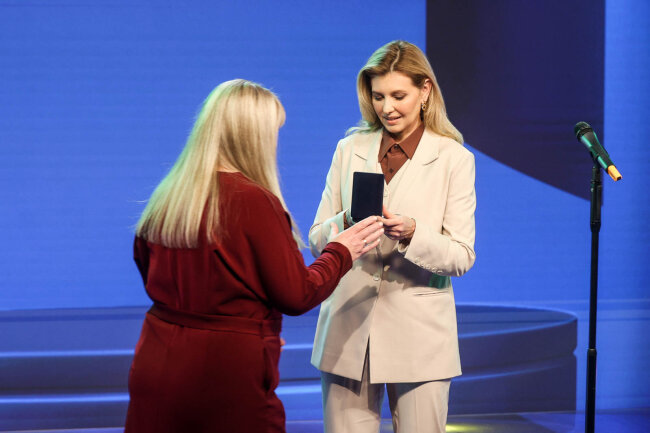 Перша леді України звернулася зі словами подяки до всіх вчителів країни і особисто нагородила педагога Наталію Песоцьку, яка під час обстрілів Чернігова 17 діб поспіль рятувала в підвалах 30 дітей Чернігівського центру соціально-психологічної реабілітації. Пізніше вчительці вдалось перевезти підопічних на Івано-Франківщину у безпечне місце. Як зазначила Олена Зеленська, для неї велика честь особисто вручити нагороду пані Наталії, адже її історію перша леді часто згадує на міжнародних зустрічах та під час інтерв'ю.