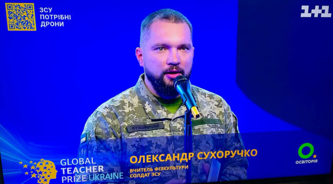 Як зазначив у своїй промові прем’єр-міністр, 900 вчителів вступили до лав ЗСУ і зараз воюють на фронті. Цьогоріч організатори премії зібрали чимало історій про вчителів, які захищають своїх учнів ціною власного життя та здобувають перемогу України. Саме до цих педагогів звернувся зі словами подяки телеведучий, співзасновник ГО Junior Олександр Педан.
