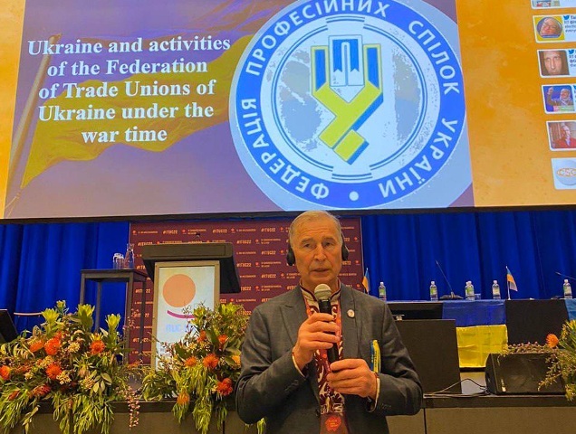На конгресі виступив Голова Федерації профспілок України, член Генеральної ради МКП, віце-президент МКП Григорій Осовий.