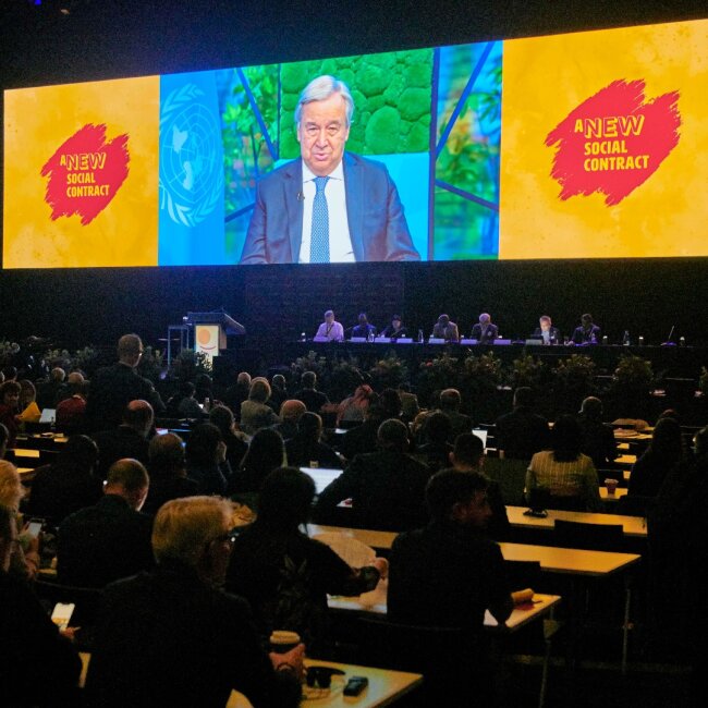У центрі дебатів була тема нового соціального договору: робочі місця безпечні для клімату, права трудящих, справедлива заробітна плата, соціальний захист, рівність та інклюзивність.