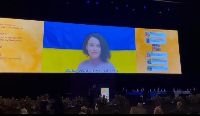 Особливо переконливо звучав голос профспілкової молоді на V Всесвітньому конгресі МКП, і під відеозверення українських студентів, молодих працівників, профспілковців від усіх профспілок, Іванна Храпко підкреслила, що важливо аби міжнародний профрух знав про те горе, яке спіткало Україну і від якого ми боронимо увесь світ.