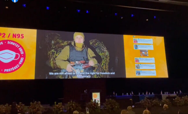Учасникам Конгресу була продемонстрована презентація «Війна в Україні: солідарність з народом і профспілками України/реформа трудового законодавства/відбудова України». На численних слайдах було документально показано, що таке російська агресія насправді, і як українці зустріли агресора. Делегати та гості Конгресу побачили які жахіття принесла із собою війна: зруйновану інфраструктуру, знищені лікарні, школи, цілі населенні пункти.